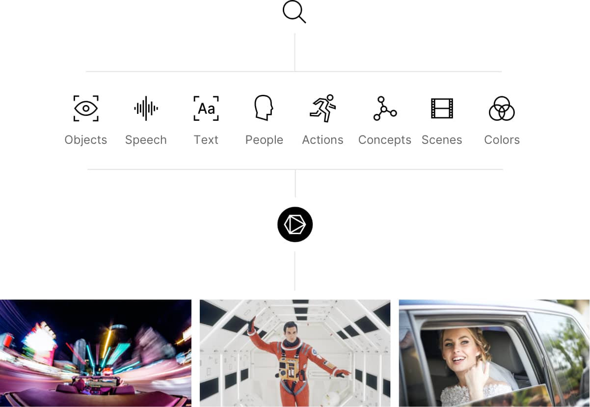 With this in mind, our advanced artificial intelligence was created to see and hear video the same way humans do. When you upload a video into our system, it is automatically analyzed and indexed on several dimensions, turning previously invisible elements into data you can search and interact with. Speech, faces, objects, sounds, actions, text and concepts are just a few of the dimensions Skiv search operates in.
